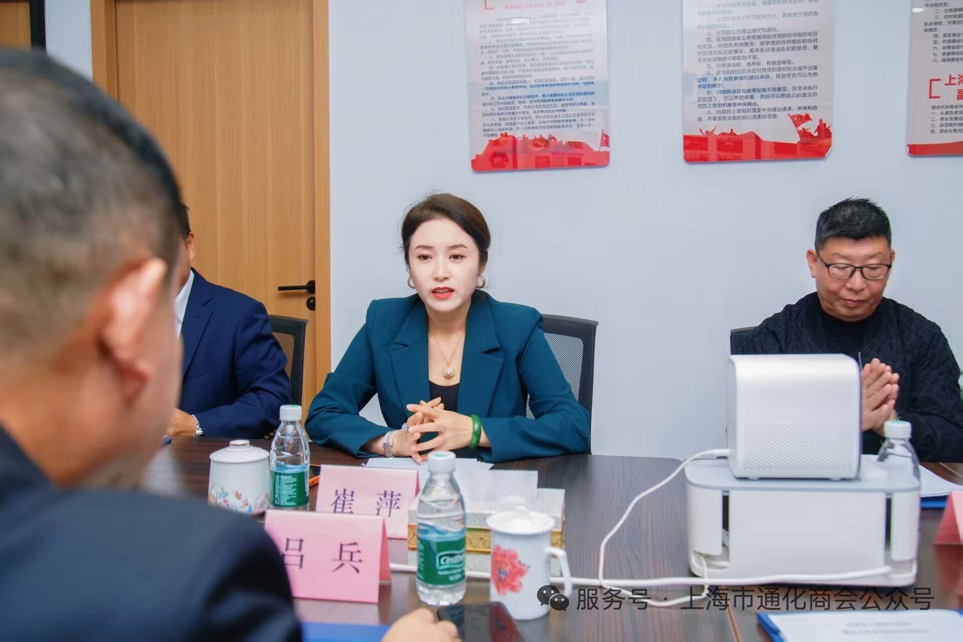 座谈会上,崔萍会长首先致辞,向远道而来的各位领导、各位乡贤表示热烈的欢迎!同时,向代表团介绍通化商会回报家乡工作情况:一、扎根上海,情系吉林。通化商会自成立以来,始终秉持“沪通天下,商惠未来”的理念,以“服务立会、发展兴会、团结强会"的宗旨,走过了从初创到成长、从探索到成熟的发展历程。目前,通化商会汇聚了一批在各行各业努力打拼、小有成就的民营企业家。大家虽身处东海之滨,黄浦江畔,但始终心系大美吉林。四年来,通化商会以乡情为纽带,以服务为根本,以发展为目标,凝聚在沪通化籍民营企业家的智慧和力量,搭建起沪吉两地经贸往来的重要桥梁。二、携手共进,合作共赢。在新的历史起点上,通化商会勇担使命、主动作为,努力在以下方面实现了新突破:一是当好政策的"宣传员",及时传递吉林振兴发展的最新政策,解读上海改革开放的创新举措;二是当好合作的"联络员",积极促进两地企业在技术、资金、人才、市场等方面的深度对接;三是当好服务的"保障员",为在沪吉商提供全方位、多层次、专业化的服务支持;四是当好家乡的"推介员",以上海视角讲好吉林故事,以全球视野展示吉林魅力。充分发挥商会的平台优势,聚焦产业升级,推动创新发展;聚焦开放合作,促进资源共享;聚焦人才培养,夯实发展基础;聚焦社会责任,彰显企业担当。通过实实在在的工作,为吉林全面振兴注入新的活力,为上海改革发展贡献吉商力量。三、美好祝愿,共享未来。进博会是中国对外开放的重要窗口,也是全球企业共享发展机遇的重要平台。值此盛会之际,吉林省工商联代表团来沪考察交流,必将收获丰硕成果,开启合作新篇。衷心祝愿代表团此行圆满成功、硕果累累!希望各位领导和广大民营企业家在上海多走走、多看看,感受这座城市的创新活力,同时也为通化商会健康发展多提宝贵意见。